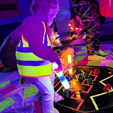 A fun, weekly multi-sensory class bursting with light-up sensory props, action songs, musical instruments, puppets, dress-up, and play cloth fun designed to spark joy and illuminate your little one’s senses!